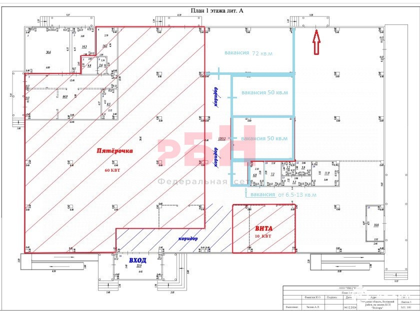 В настоящий момент формируется пулл арендаторов, общая площадь не разгорожена. Есть возможность планировки под конкретные требования.
